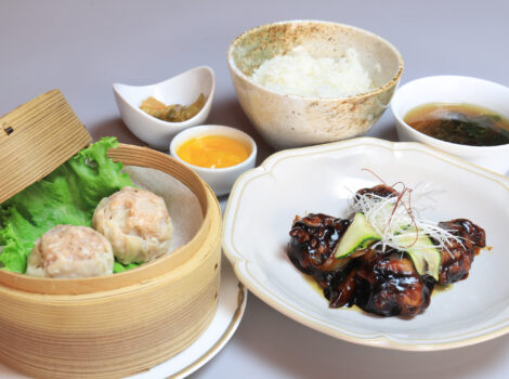 自家製焼売に黒酢酢豚 がついた 中華セットです。